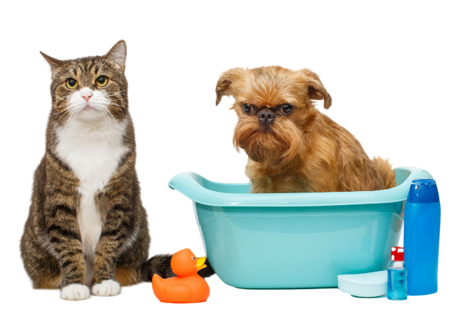 Temos uma equipe de primeira e especializada no cuidado e manuseio do seu cachorro ou gato na hora do banho;